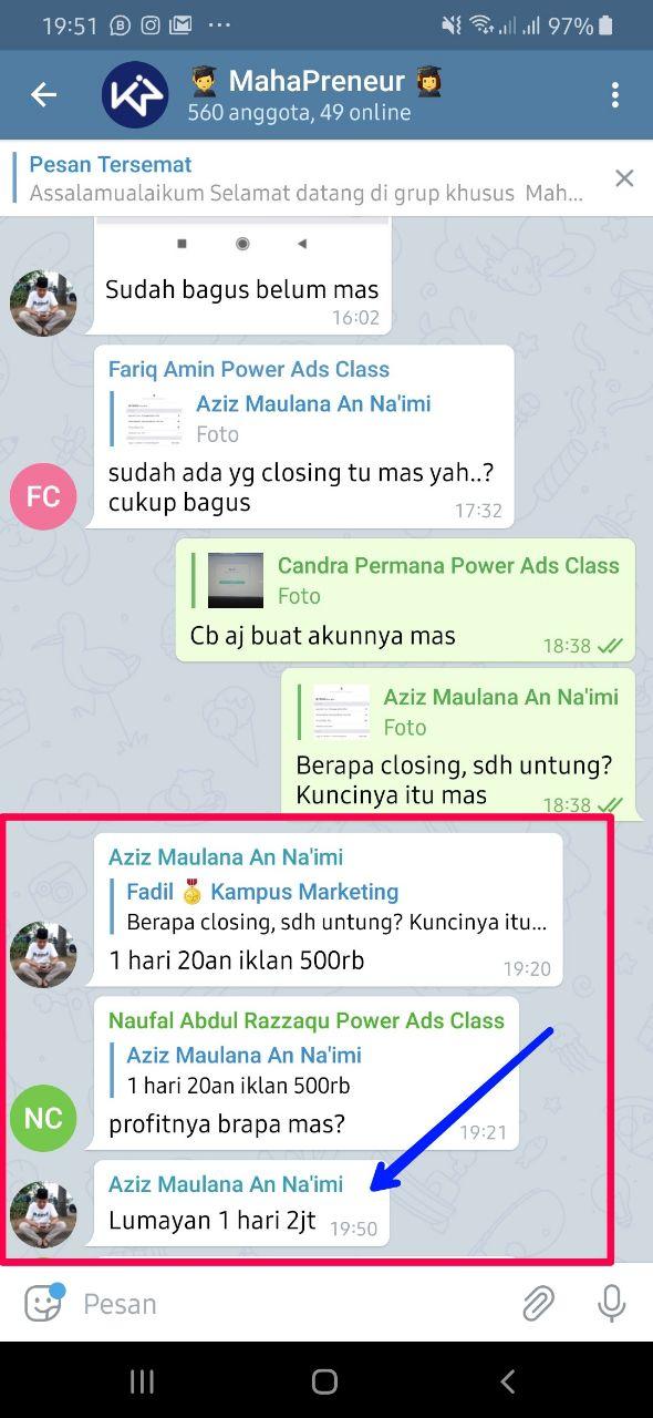 Anda juga bisa bergabung di grup khusus telegram member kampus marketing